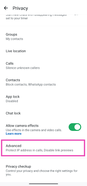 您可以在 WhatsApp 上將來自未知號碼的來電靜音,方法是:設置>隱私>通話並打開“讓未知來電者靜音”旁邊的切換開關。