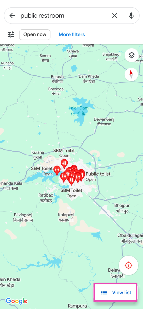第4步:打查看列表查看您附近所有衛生間的名稱和其他詳細信息。
