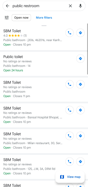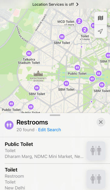 簡單的答案是否定的。您甚至不需要在手機上啟動任何應用程序即可找到附近的廁所。您可以使用設備的語音助手(Siri 或 Google Assistant)調出所有結果並將其列在地圖上。谷歌地圖擁有最詳盡的公共設施列表,幾乎涵蓋您附近的每個位置。如果您找不到衛生間,您可能需要擴大搜索範圍並尋找酒店和公共住宿。根據要求,他們可能會讓您使用他們的衛生間設施。