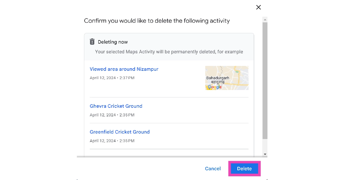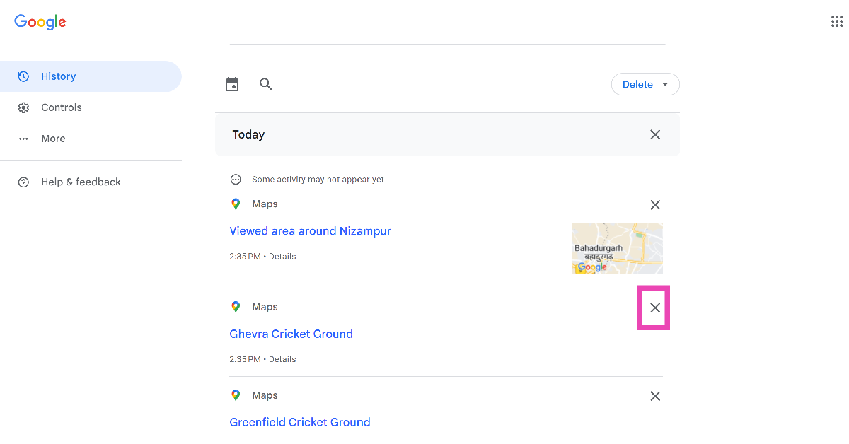 第5步:擊中十字圖標旁邊的一個位置消除它來自谷歌地圖歷史記錄。