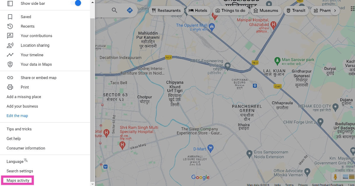步驟一:打開谷歌地圖在您的網絡瀏覽器上。