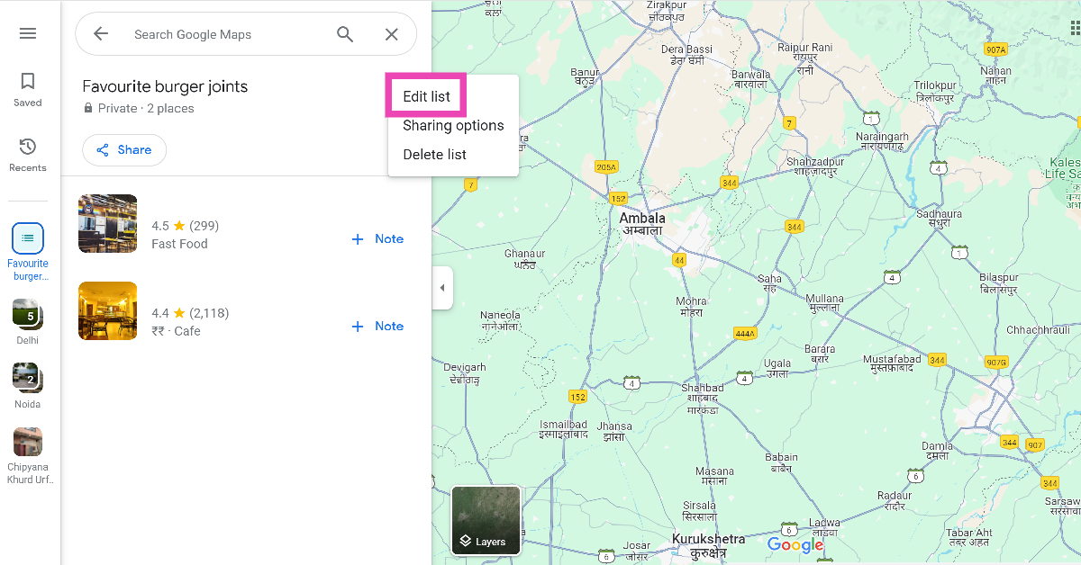 一旦 Google 地圖驗證了您的報告,該位置就會被刪除。同樣,您也可以編輯列表的名稱和位置。