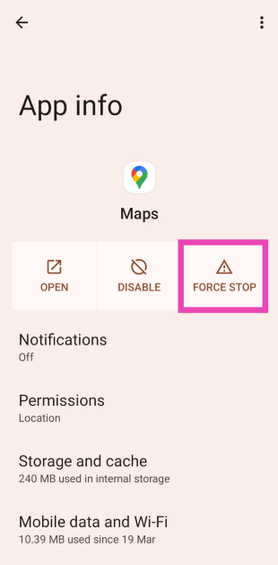 根據您的當地時間,Google 地圖應用會自動切換到深色模式。如果應用程序沒有訪問位置權限,則不會發生這種情況。前往設置>應用程序>Google 地圖,點擊“權限”,然後授予應用程序訪問位置的權限。