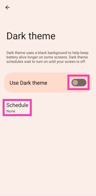 步驟3:打開撥動開關使用深色主題並設置日程。