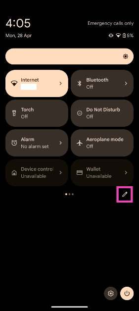 從狀態欄向下滑動,點擊鉛筆圖標,長按密碼管理器的圖塊,然後將其放在您喜歡的位置。