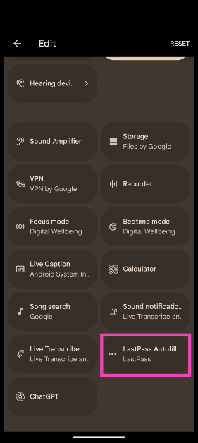 第三方密碼管理器應用程序為快速設置菜單提供了特殊的圖塊。 Google 密碼管理工具不提供此功能。查看如何為密碼管理器添加快速設置磁貼。