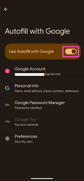 步驟3:打開旁邊的切換開關使用 Google 自動填充功能。