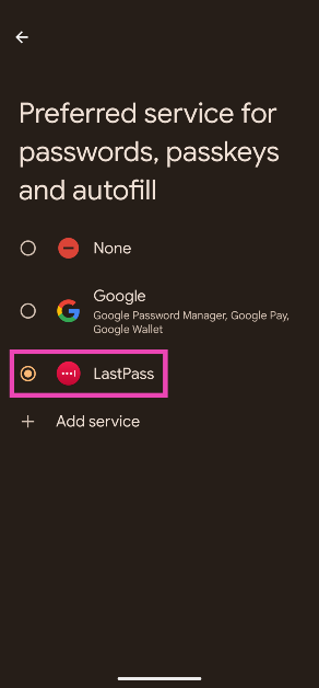 如果您使用第三方密碼管理器應用程序,請確保將其設置為自動填充密碼的默認應用程序。