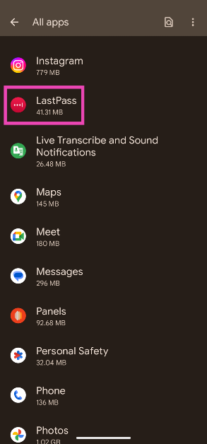 步驟2:選擇您的密碼管理器應用程序。