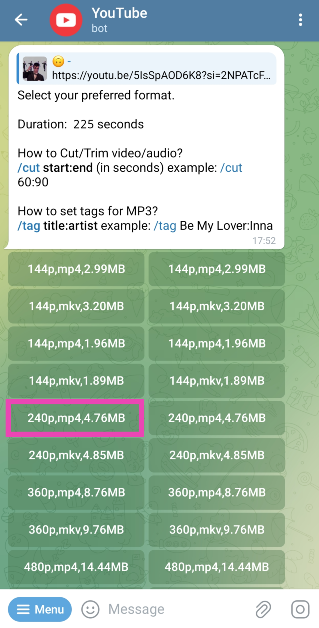 有幾個機器人可以讓您在 Telegram 上保存 YouTube 視頻。我們最喜歡的是 Y2Mate 機器人。