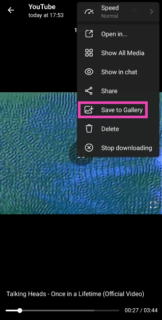 第6步:視頻將被下載並在聊天中發送給您。打開它並選擇保存到圖庫。