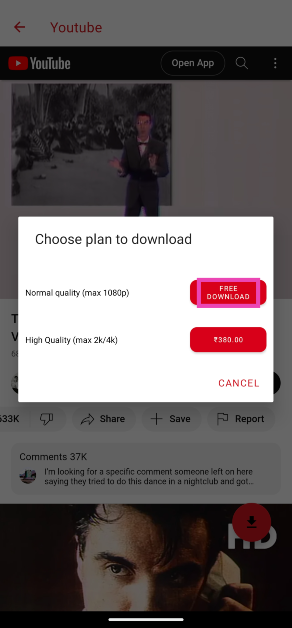 第5步:選擇免費下載。看幾個廣告下載視頻。
