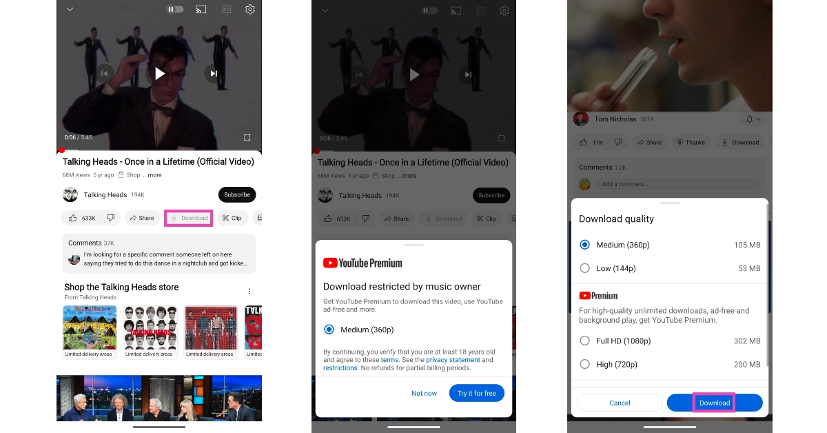雖然上述方法可以輕鬆地將 YouTube 視頻直接下載到 Android 手機的圖庫中,但它們違反了 YouTube 的內容政策。在 YouTube 上下載視頻的最合法方法是將其保存在應用程序中。您需要訂閱 YouTube Premium 才能使用此功能。雖然某些內容創作者可能允許非高級訂閱者下載他們的視頻,但 YouTube 將視頻的視頻質量限制為 360p。高級用戶也可以以高清分辨率保存視頻。可以從應用程序中的“下載”文件夾訪問保存的視頻。
