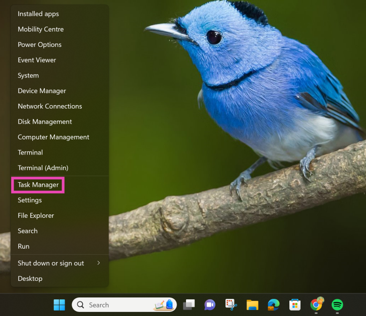 步驟一: 右鍵單擊在視窗圖標在任務欄上。或者直接按Windows 鍵 + X。