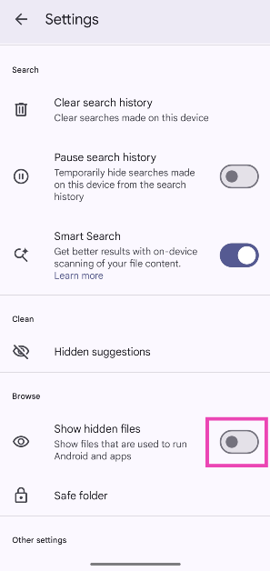 步驟一: 發射手機上的文件管理器應用程序。前往其設定。