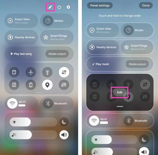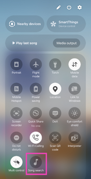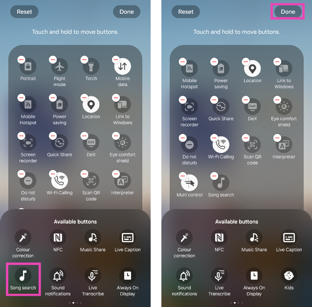 轉到快速設置菜單,點擊編輯按鈕,將“歌曲搜索”圖塊添加到菜單,然後點擊“完成”。每當您想要搜索歌曲時,請使用此圖塊。