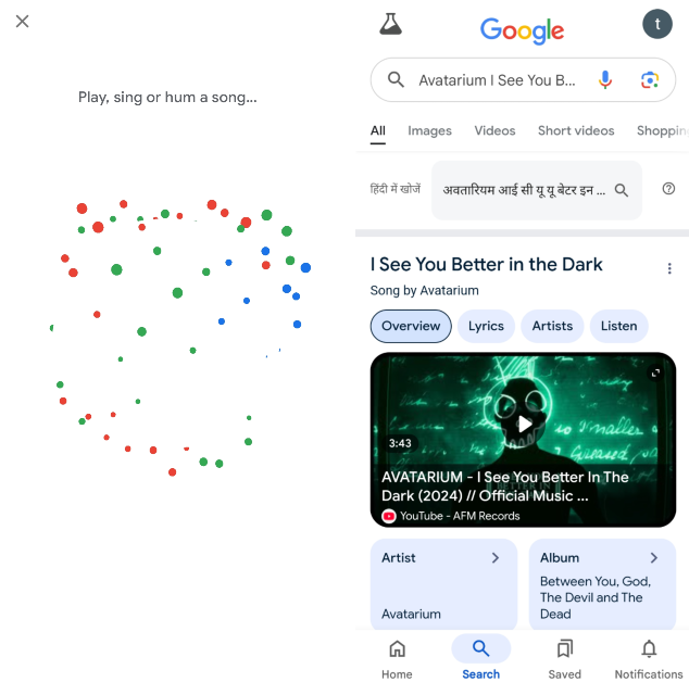 第6步:谷歌助理將分析歌曲並呈現相關內容搜索結果。