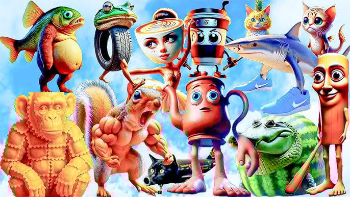 它實際上是一種名為“meme”的模因流派的風格意大利腦腐病,以其荒誕的人物、離奇的故事講述和戲劇性的畫外音而聞名,通常帶有模仿意大利的風格。這些角色通常看起來像是動物、物體或人的混合體。
