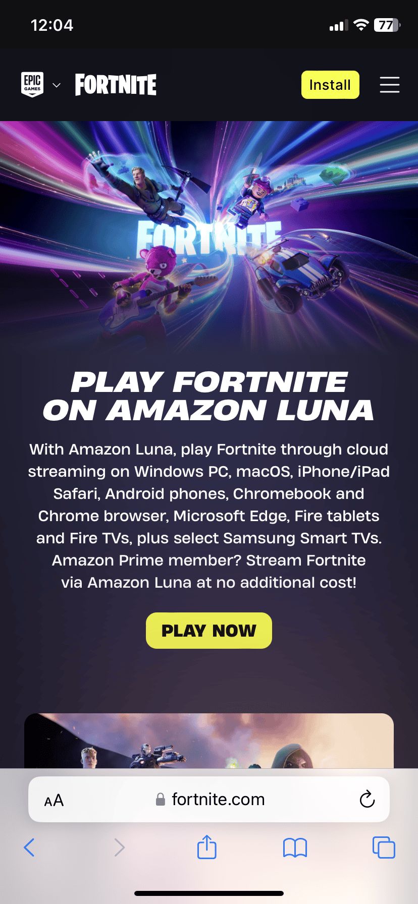 在 iPad 上玩《堡壘之夜》的方式與 iPhone 相同。通過 Safari 使用雲遊戲服務。或者,如果您位於歐盟,請下載 Epic Games Store 應用程序並以這種方式安裝 Fortnite。