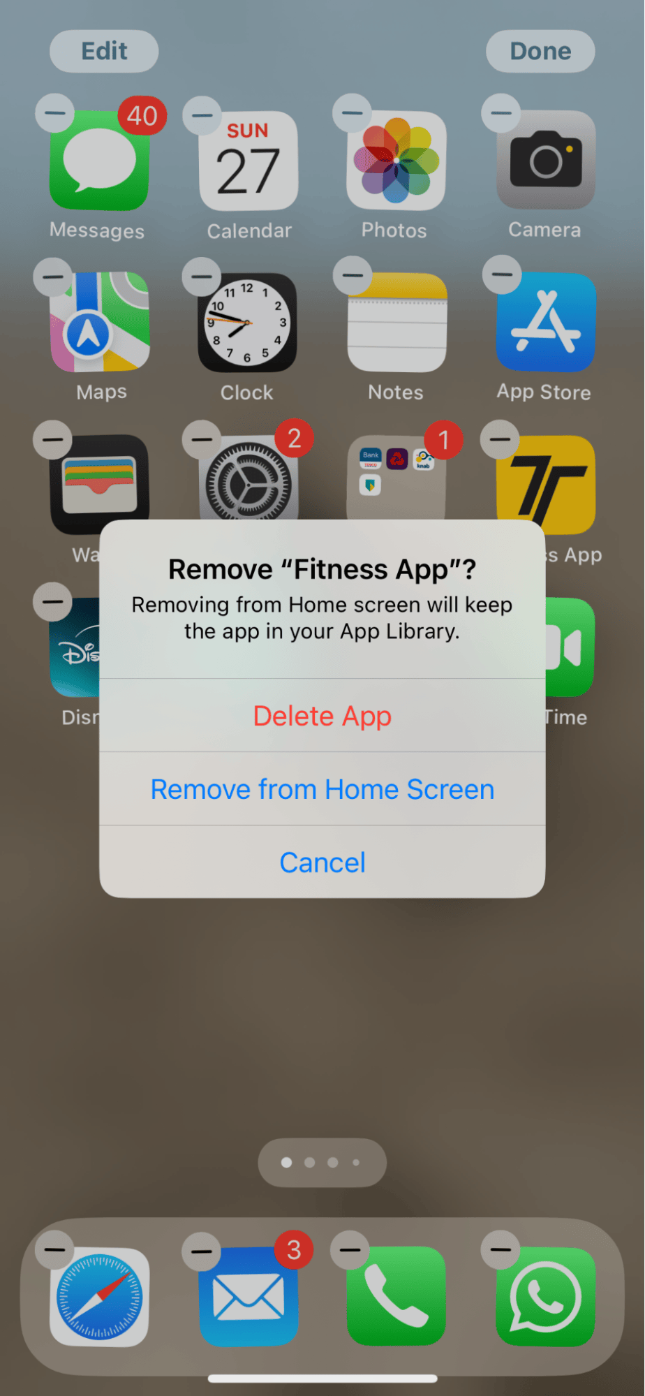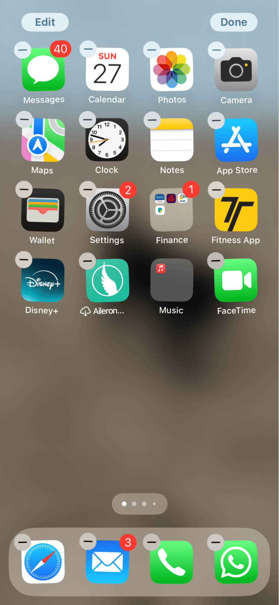- 按住應用程序圖標,直到它們全部開始擺動。