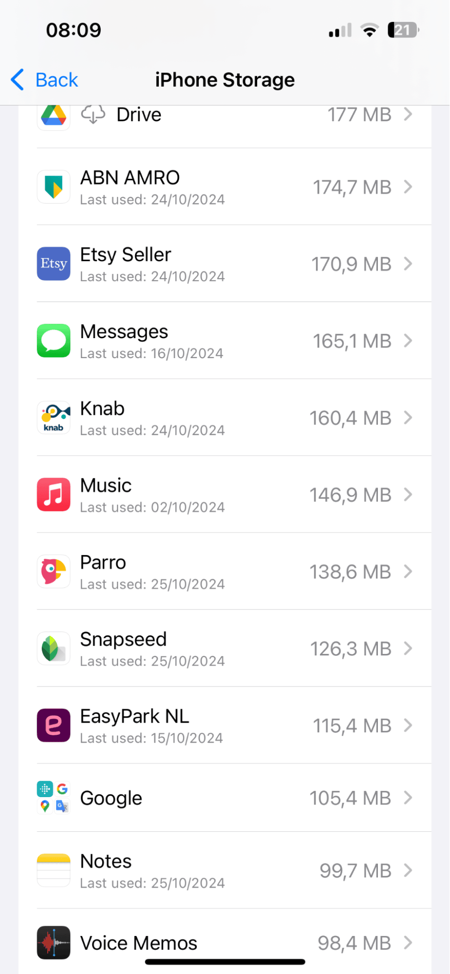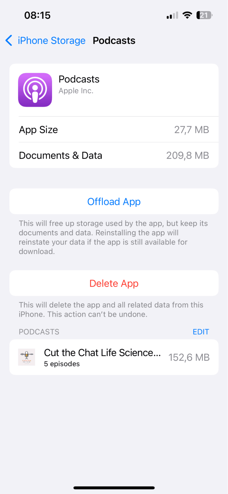 - 在“設置”應用程序>“常規”>“iPhone 存儲”中。