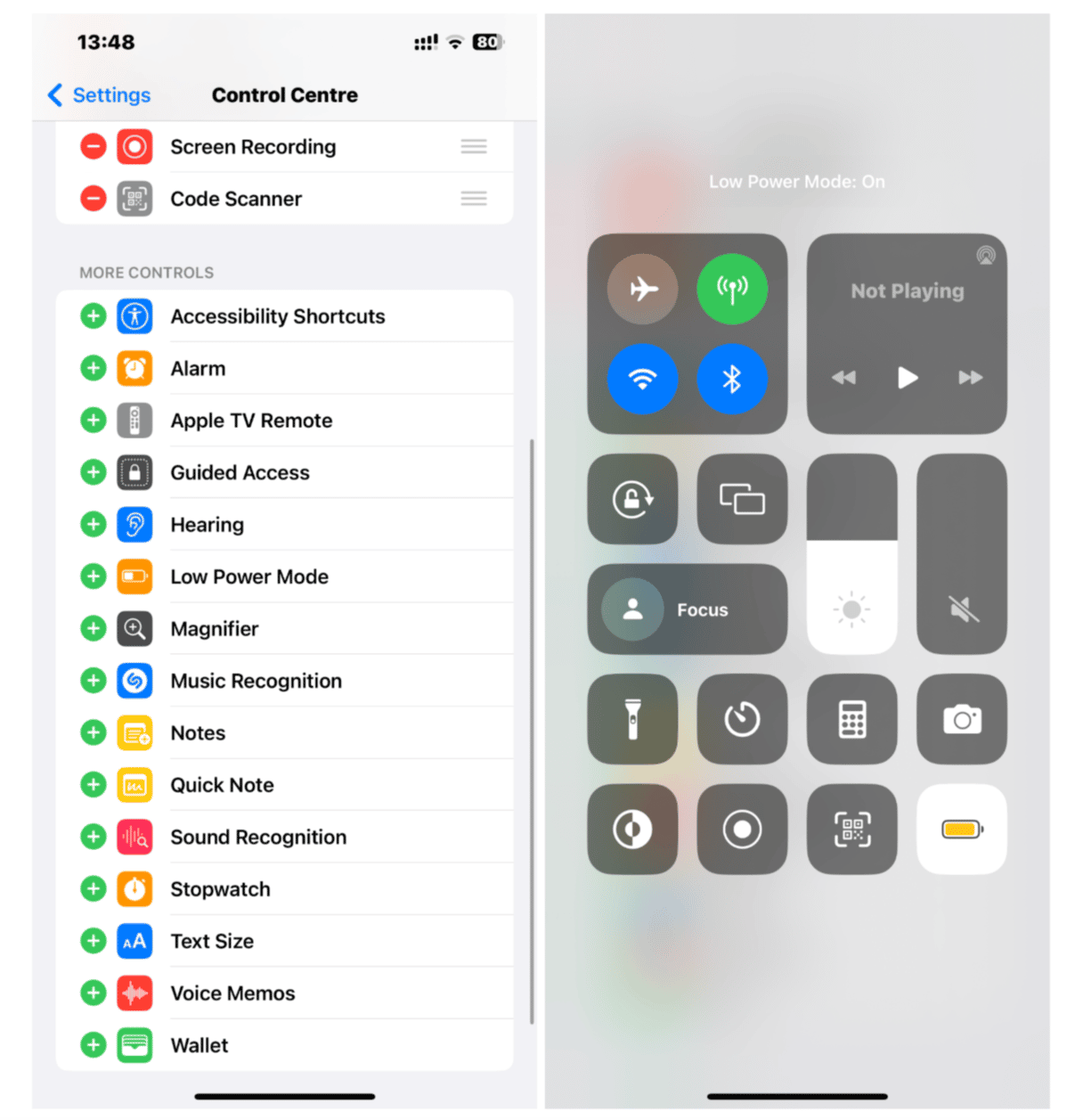 如果您經常使用將 iPhone 切換到低電量模式的功能,則可以將電池圖標添加到手機的控制中心,以便更輕鬆地打開和關閉低電量模式。操作方法如下: