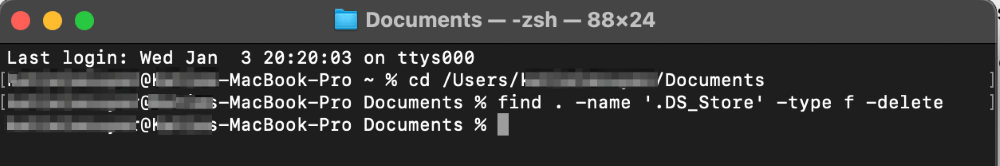 此外,要刪除所有 .DS_Store 文件,它將如下所示: