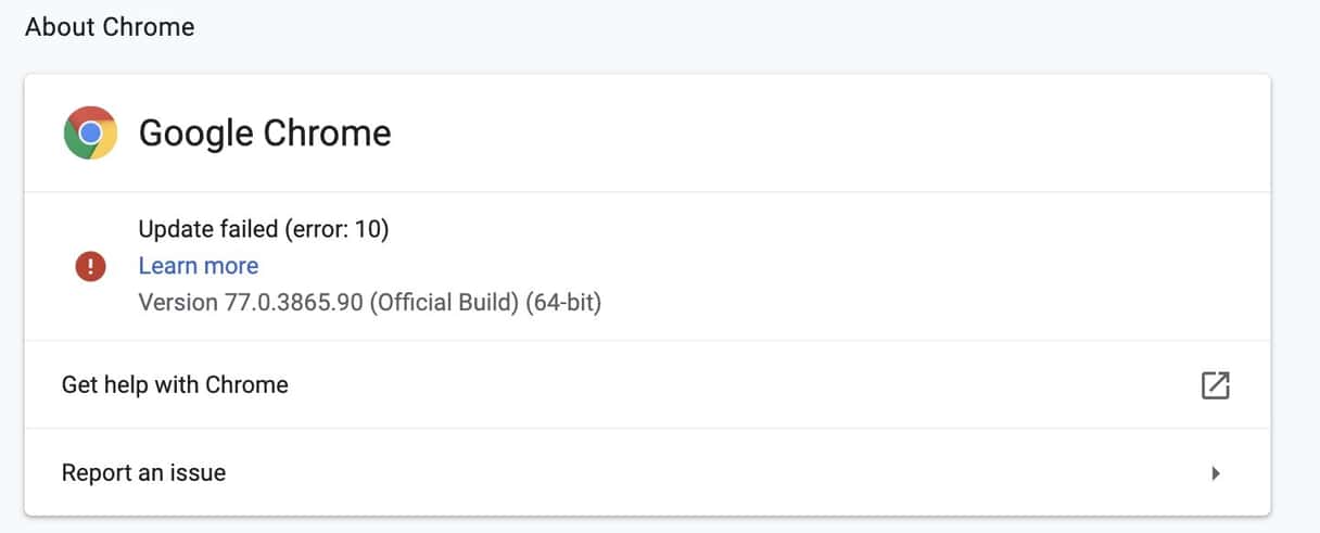 卸載 Google 更新後,您需要確保它已從您的 Mac 中完全刪除。為了確保它永遠消失,請打開 Chrome 並在地址欄中輸入 chrome://help 。