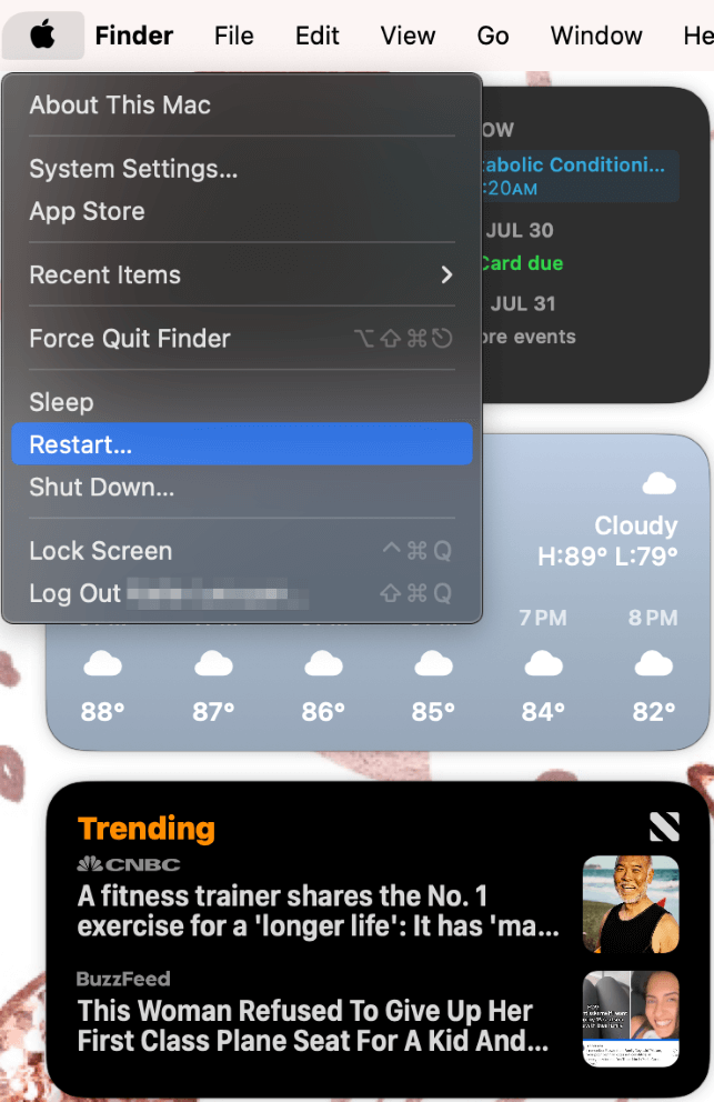 - 嘗試重新啟動您的 Mac。這是最簡單的故障排除方法之一,並且通常是解決小故障所需的全部操作。