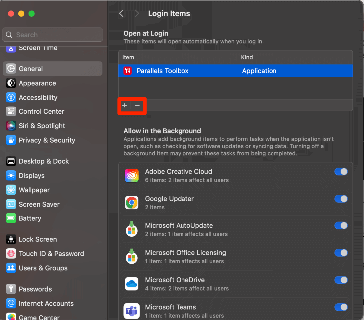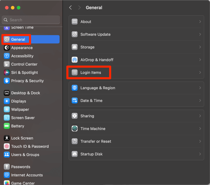 當您更新計算機時,另一個可能會降低 Mac 速度的項目是登錄項目。如果您選擇在登錄時打開尚未針對 macOS Sonoma 進行優化的應用程序,那麼您可能需要從此過程中將其刪除。為此,請執行以下步驟: