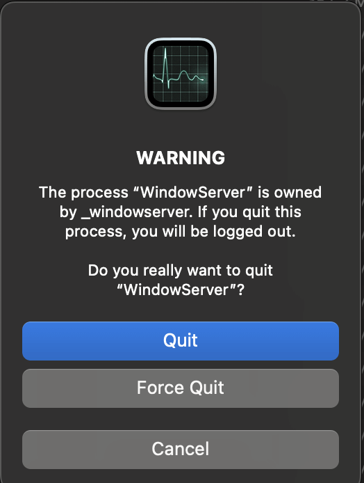 如果您退出任何內容,系統會要求您單擊退出或者強制退出確認。