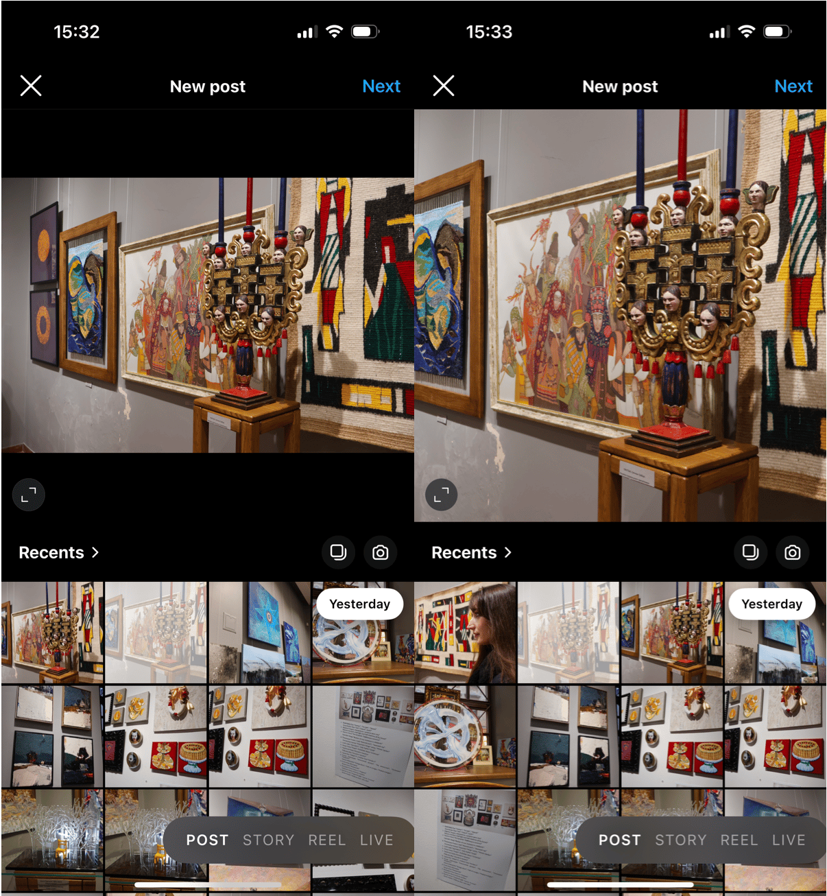 您可能已經註意到,當您用 iPhone 拍照並將其發佈到 Instagram 上時,其中的某些部分會被剪掉。這是因為 iPhone 相機的長寬比是 3:4,而 Instagram 使用的是 1:1。但是,它確實可以讓您發布幾乎全尺寸的照片。不過,垂直照片的頂部或底部仍然會被裁剪掉,因為您的原始照片是 3:4,而不是 4:5。