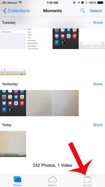 您以慢動作模式錄製的所有視頻都將在此相冊中。它們也可以在視頻和相機膠卷相冊中找到,但根據您拍攝的其他視頻和圖片的數量,通常在特定的慢動作相冊中更容易找到它們。