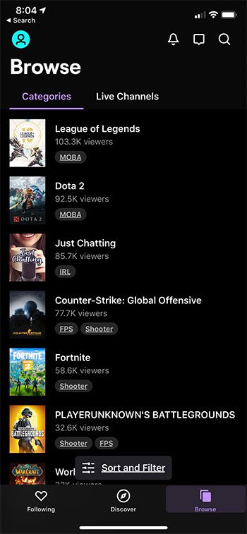 然而,如前所述,iPhone 上的其他所有內容也將處於深色模式。希望 Twitch 很快就會提供更新,讓我們可以在應用程序中使用深色模式,而無需依賴 iPhone 的外觀設置。