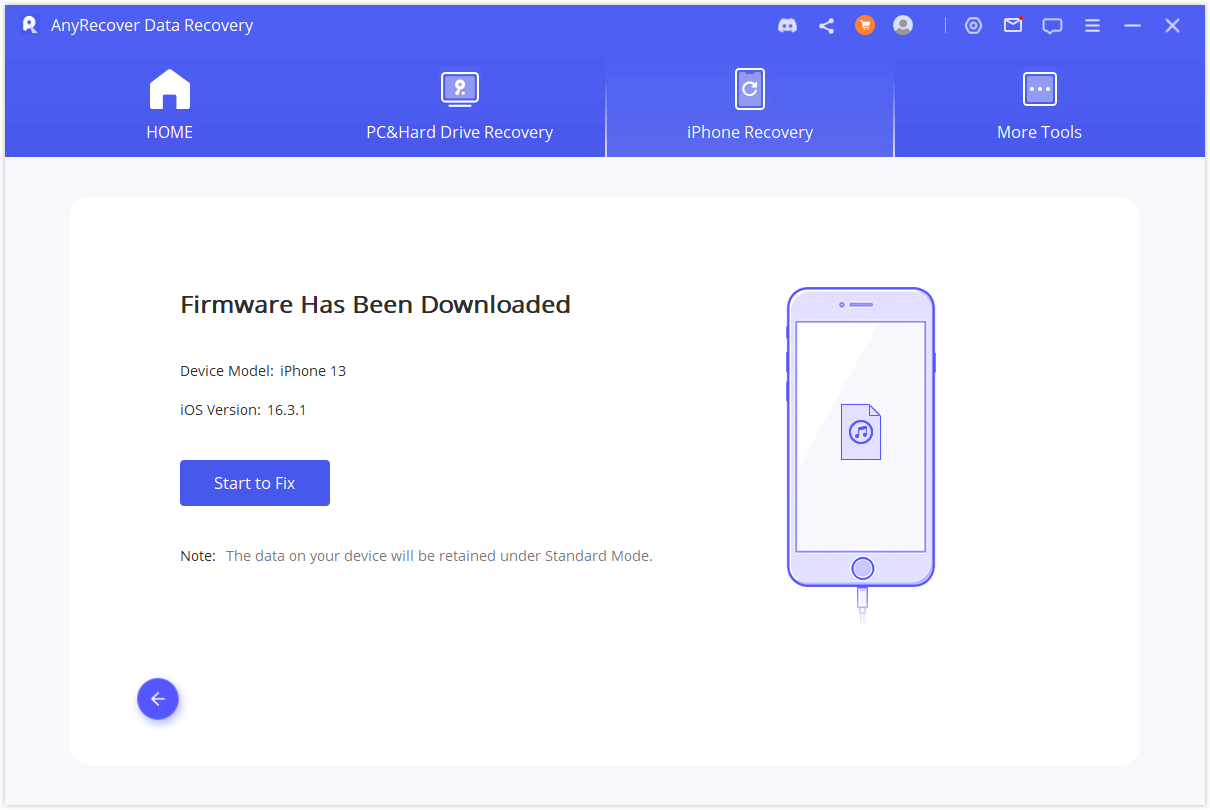 使用AnyRecover標準修復模式,您可以解決系統問題而不會丟失任何數據。最好的部分是它不需要任何技術技能即可使用,因為它在修復任何 iOS 或 tvOS 錯誤方面擁有很高的成功率。此外,AnyRecover 還提供進入和退出恢復模式的通道,甚至允許您根據需要將 iOS 系統降級到以前的版本。