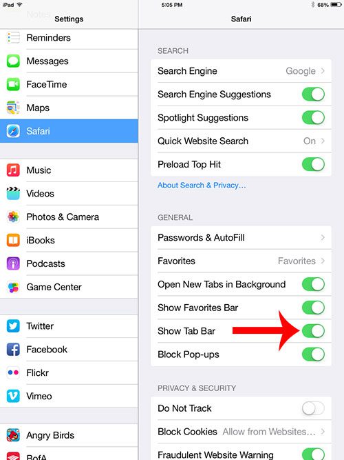 我們的指南在下文中繼續提供有關如何在 iPad 上的 Safari 中啟用選項卡選項的更多信息,包括這些步驟的圖片。
