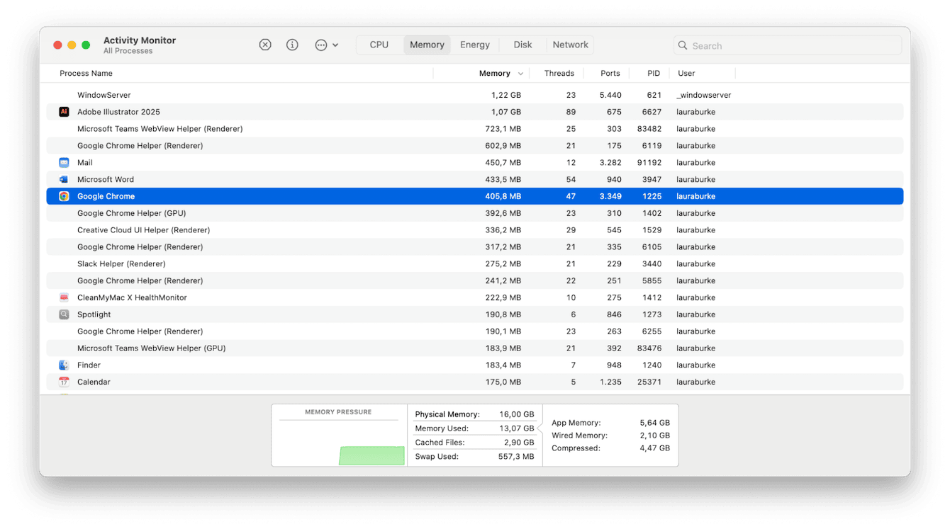 不用說,Illustrator 非常消耗資源,如果您同時打開多個應用程序,這可能會開始耗盡 Mac 的內存。如果您不經常使用它,請將其關閉;使用活動監視器的方法如下: