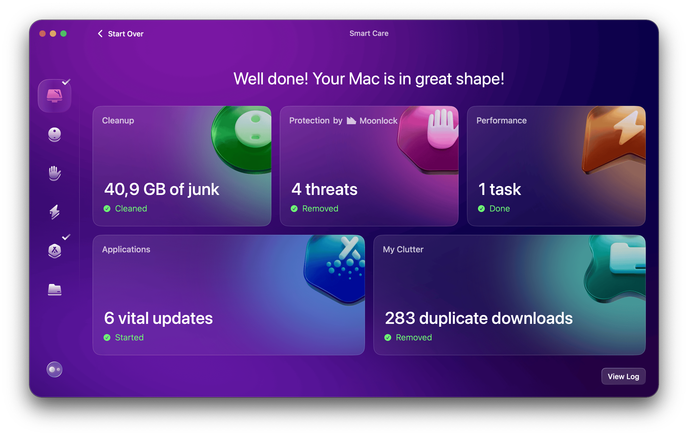 使用 CleanMyMac 等 Mac 清潔應用程序,它附帶令人印象深刻的 Smart Care 工具,可以在一個地方管理所有內容。這個功能很強大;它執行五項基本檢查,以確保您的 Mac 保持優化和健康;方法如下: