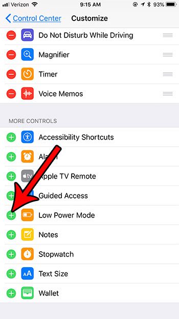 本節中的步驟將向您展示如何向控制中心您可以點擊以打開或關閉低功耗模式。請注意,您的 iPhone 需要使用 iOS 11 或更高版本才能使用此選項。