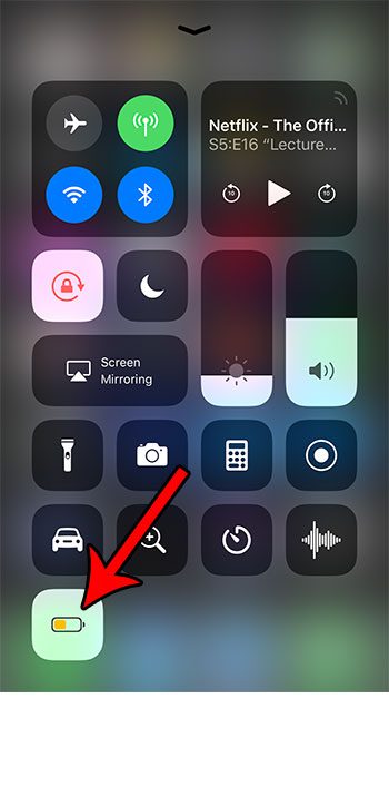 將低功耗模式按鈕添加到控制中心後,您將能夠從屏幕底部向上滑動並點擊該按鈕以根據需要打開或關閉低功耗模式。