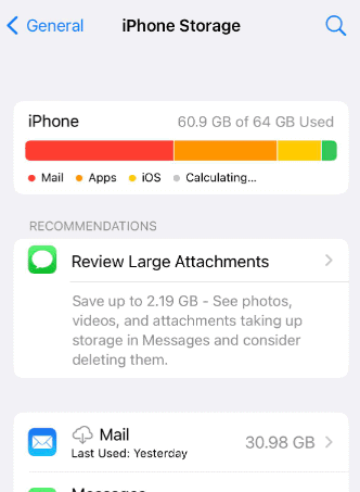 - 存儲空間:低存儲會阻礙郵件應用程序的性能。通過刪除未使用的應用,照片或視頻來釋放一些空間。