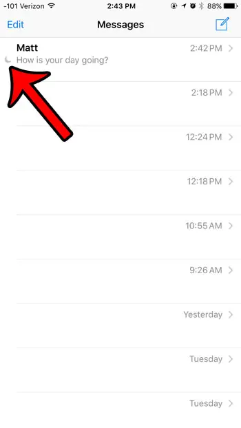 我們的文章在下面繼續提供有關 iPhone 上短信對話旁邊的鈴聲的更多信息,包括如果您使用的是較舊版本的 iOS,如何刪除 iPhone 上的月亮,以及這些步驟的圖片。