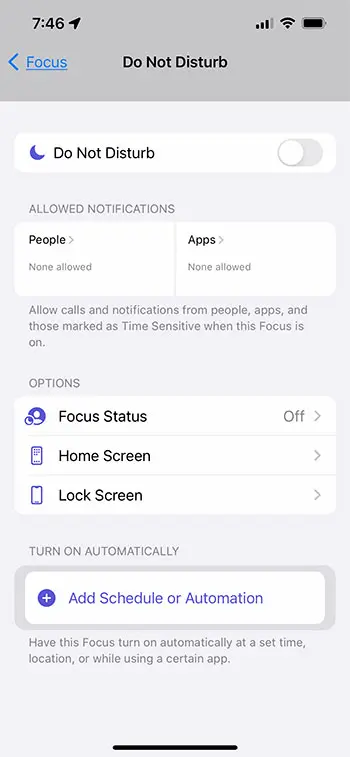 所以,通過去設置 > 焦點 > 請勿打擾> 然後調整該菜單上的設置,您會將 iPhone 置於“請勿打擾”模式。