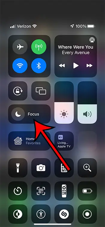 此外,如果您從屏幕右上角向下滑動,您將打開控制中心。在此菜單上,“焦點”一詞旁邊有一個半月形圖標。