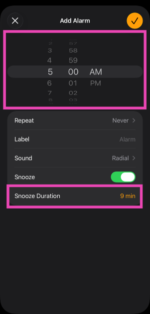 第6步:設置好小睡時間後,點擊勾號圖標在屏幕的右上角。