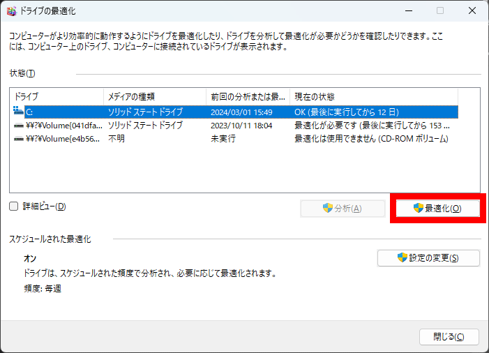 選擇“優化驅動器”。將打開一個名為“優化驅動器”的窗口。