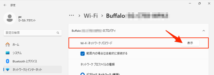 netsh wlan show profile name="Wi-Fiの名前" key=clear - 從安全設置的主要內容中查看“Wi-Fi密碼”。