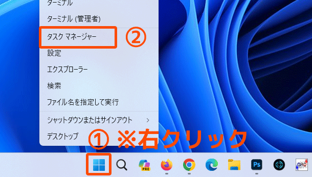 - 單擊 Windows 圖標並選擇“任務管理器”。