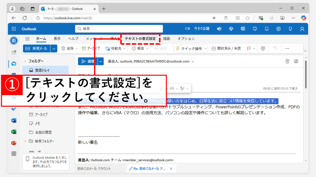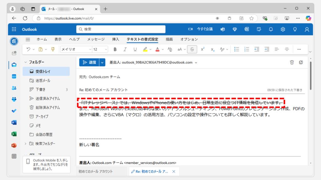 從這裡開始,網頁上的 Outlook我將以易於理解的方式解釋如何使用實際屏幕在文本上繪製刪除線(校正線)。