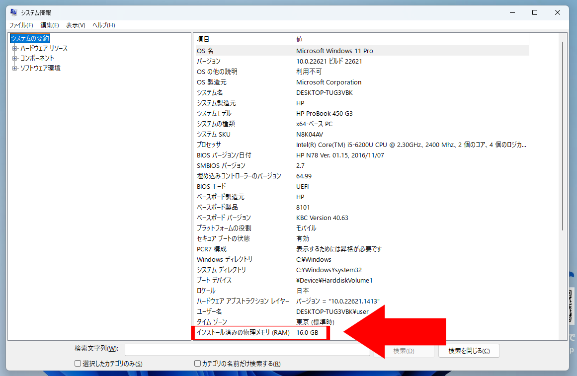 - 現在,如果您查看“系統概述”部分,您將看到一個名為“已安裝物理內存 (RAM)”的項目。